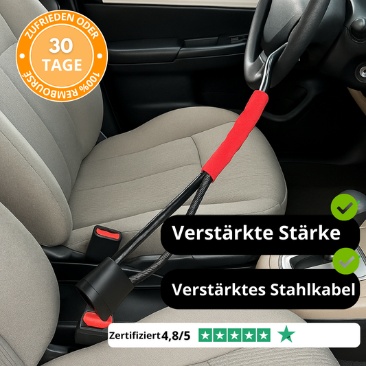 Auto-Lenkrad- und Sicherheitsgurtschloss – Verstärktes Stahlkabel + 3 Schlüssel – SUV, LKW, Autosicherheit